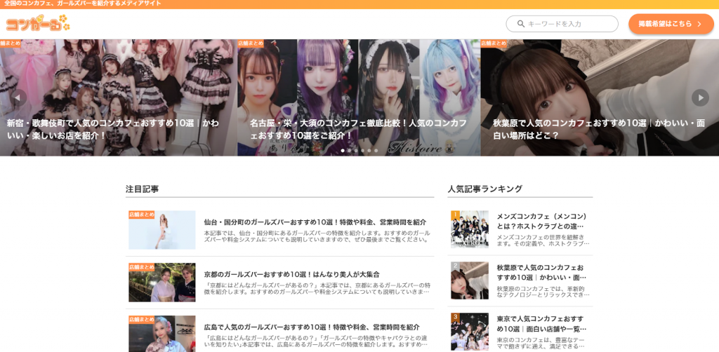 • 全国のコンカフェ・ガールズバーを網羅する専門メディア