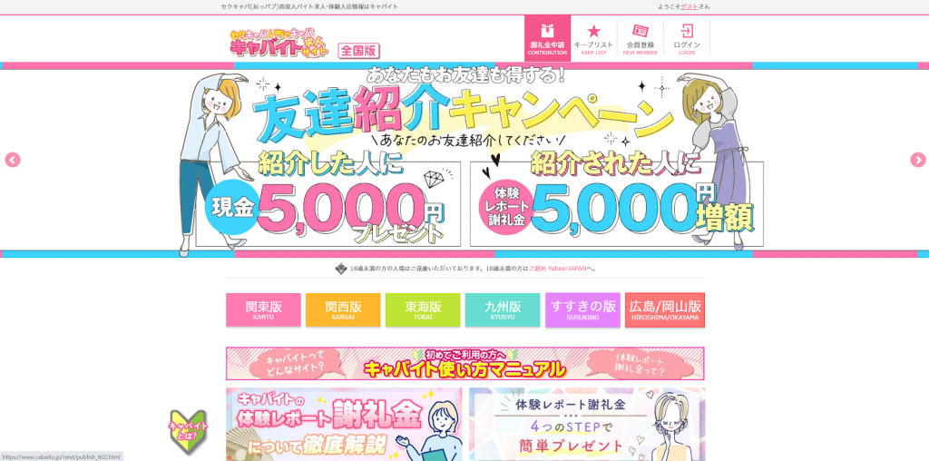 キャバイトは、セクキャバやいちゃキャバなど、専門性の高い求人情報を提供しているサイトです。