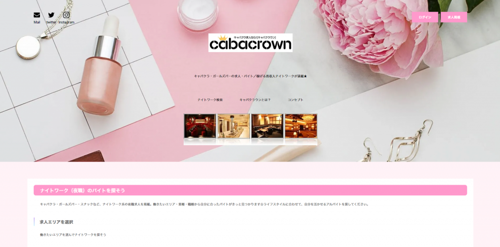 キャバクラウンはキャバクラやガールズバーを中心に、幅広いナイトワーク求人情報を提供する求人サイトです。