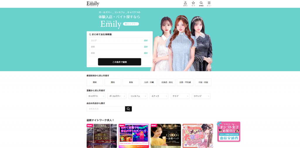 体入エミリーは、若年層をターゲットにしたナイトワーク求人サイトで、SNSを活用したプロモーションが強みです。