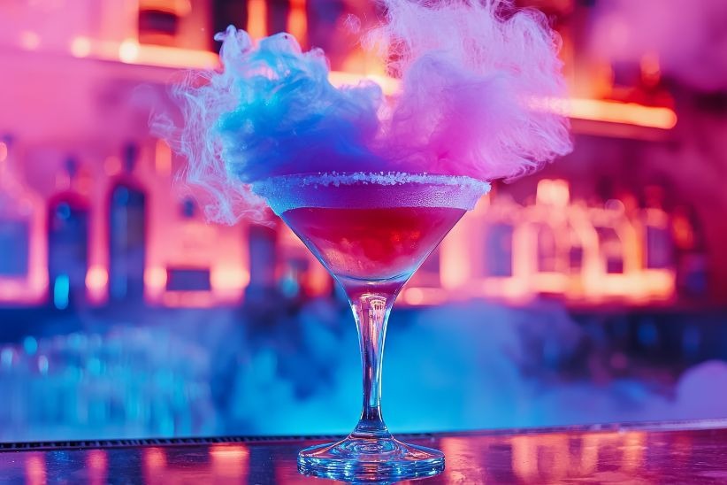 巨大な注射器に色鮮やかなリキュールを充填し、キャストが顧客の口へ直接注入するスタイルは非日常的な背徳感を演出します。